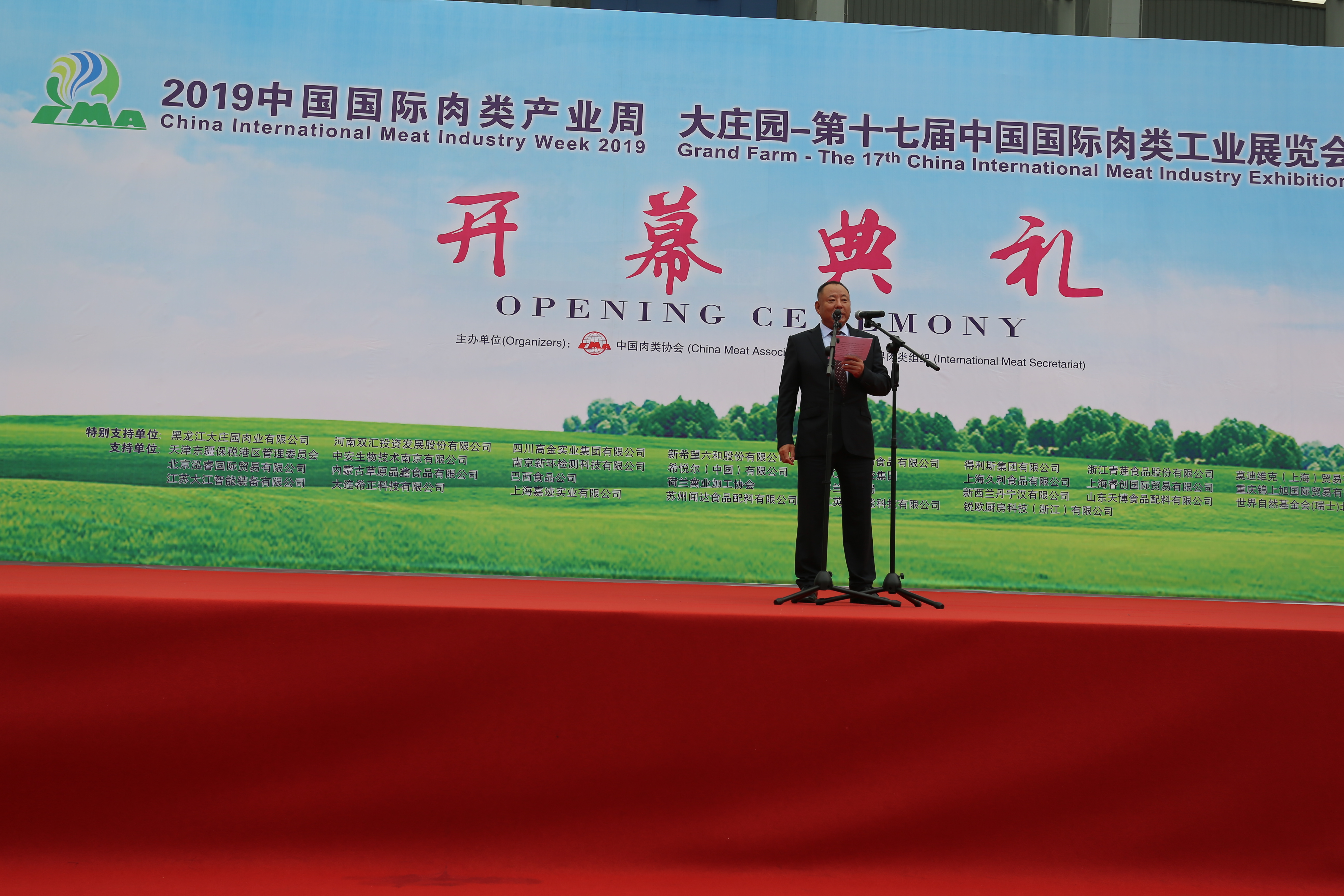 9月26日上午九時,大莊園——第十七屆中國國際肉類工業(yè)展覽會在成都世紀城新國際會展中心隆重開幕,大莊園集團董事長陳希濱先生致開幕詞。