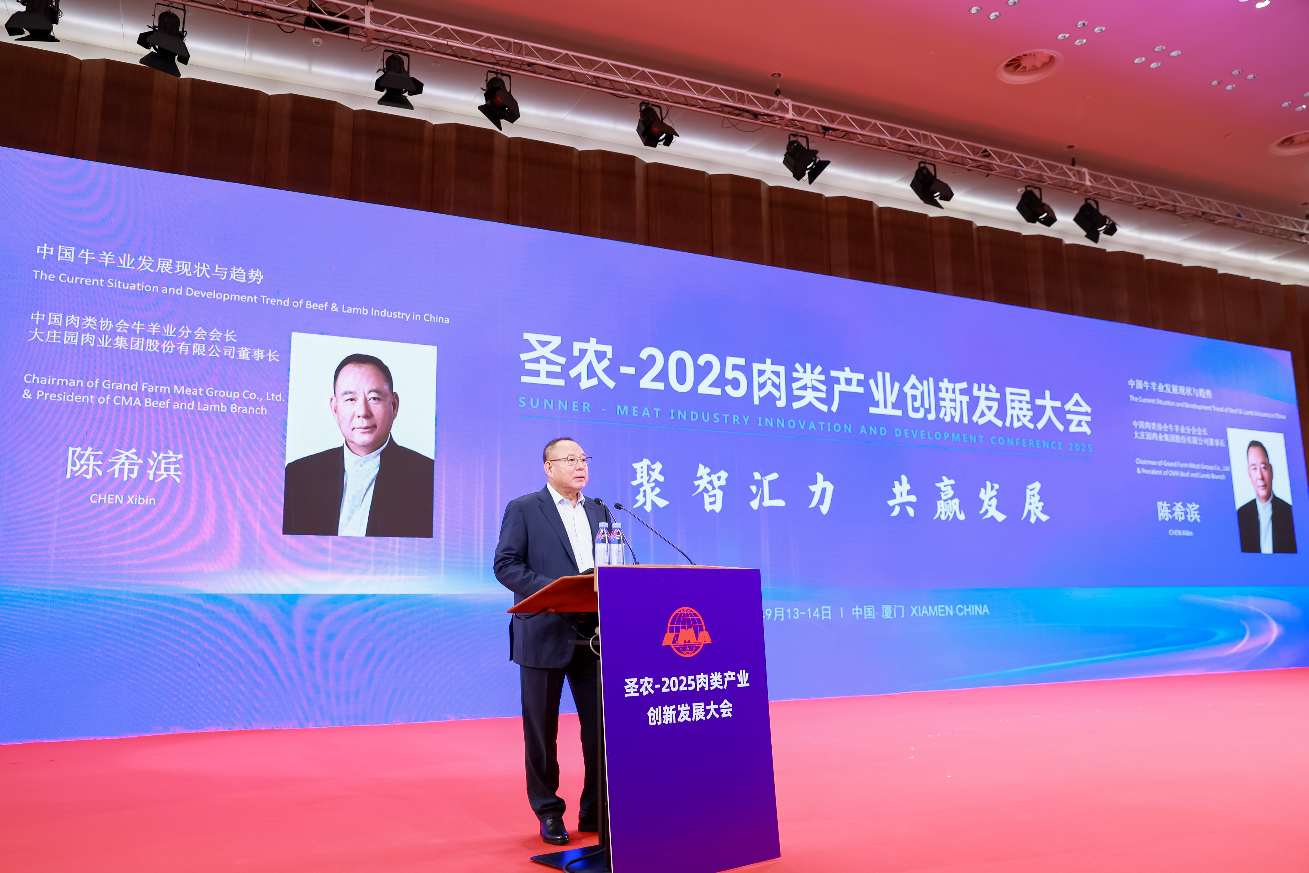 2025年9月13日—17日,2025中國國際肉類產(chǎn)業(yè)周在福建廈門成功舉辦。大莊園集團作為連續(xù)三屆中國牛羊肉協(xié)會會長單位,秉持行業(yè)引領(lǐng)者的責(zé)任與擔(dān)當全程深度參與,與政府主管部門代表、國際機構(gòu)代表、國內(nèi)外行業(yè)專家、中國肉業(yè)M50成員企業(yè)決策者聚焦產(chǎn)業(yè)發(fā)展政策、行業(yè)動態(tài)趨勢、市場消費變化、創(chuàng)新技術(shù)成果、合作共贏模式和服務(wù)貿(mào)易發(fā)展等方面,深入探討肉類產(chǎn)業(yè)高質(zhì)量可持續(xù)發(fā)展的新機遇與新挑戰(zhàn),為推動中國肉類產(chǎn)業(yè)高質(zhì)量發(fā)展注入強勁動力。