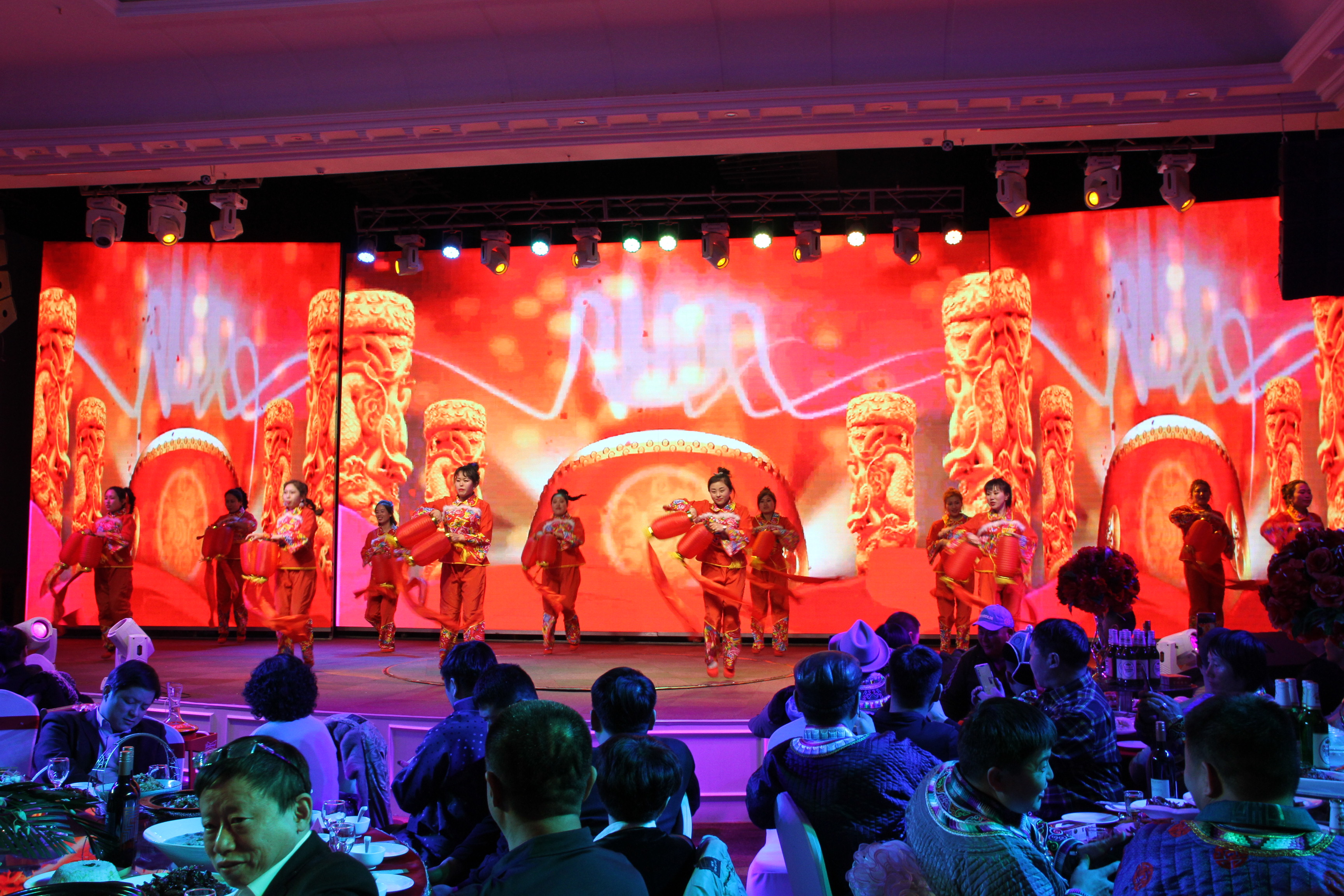 總結(jié)表彰大會之后,大家移身維也納金廳,一年一度的大莊園“春晚”在那里上演——這是大莊園人展示風(fēng)采的最佳舞臺。在集團各部門、子公司及國外友人的祝福VCR播放之后,一場喜慶的開場舞《歡樂中國年》拉開了晚會的序幕。
